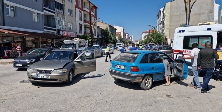 Kaza, Alaca ilçesi Zile Caddesi'nde meydana geldi. Edinilen bilgilere göre, Ferhat Y. yönetimindeki 19 LN 155 plakalı otomobil ile Bayram A. yönetimindeki 06 MHF 23 plakalı otomobil kavşakta çarpıştı. Kazada sürücülerden Bayram A. ile aynı araçta yolcu olarak bulunan B.A. ve Baran A. yaralandı.