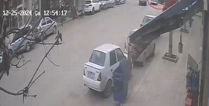 Çarpışma sonucu araçta hasta olarak bulunan bir kişi, olay yerine çağrılan ambulansla hastaneye kaldırıldı. Kaza anı, bir iş yerinin güvenlik kamerasına yansıdı.
