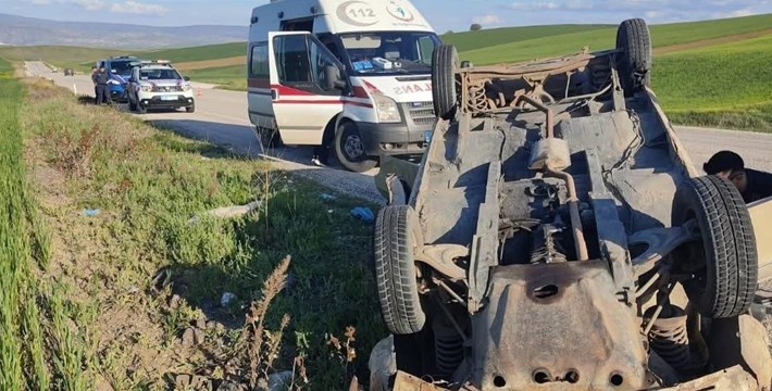 Kemal Yücel yönetimindeki otomobil, seyir halinde iken sağ arka lastiğinin patlaması sonucu kontrolden çıkarak takla attı.