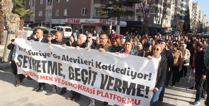 Çorum Emek ve Demokrasi Platformu, Suriye’nin kıyı kesimi ve Lazkiye çevresinde 6 Mart’tan itibaren HTŞ’li grupların Alevilere yönelik katliama karşı bir yürüyüş ve basın açıklaması düzenledi.