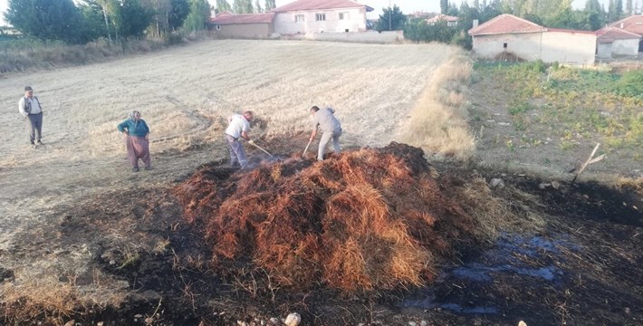 İhbar üzerine olay yerine Sungurlu Belediyesi itfaiye ve jandarma ekipleri sevk edildi. Ekipler çıkan yangını çok büyümeden söndürdü. Yangında 300 adet balya yanarak kül oldu.